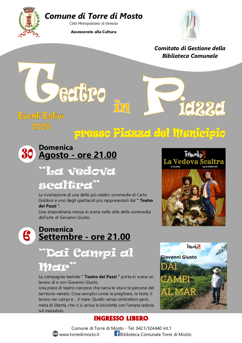 Eventi estivi 2020: Teatro in Piazza - 30 agosto e 6 settembre 2020